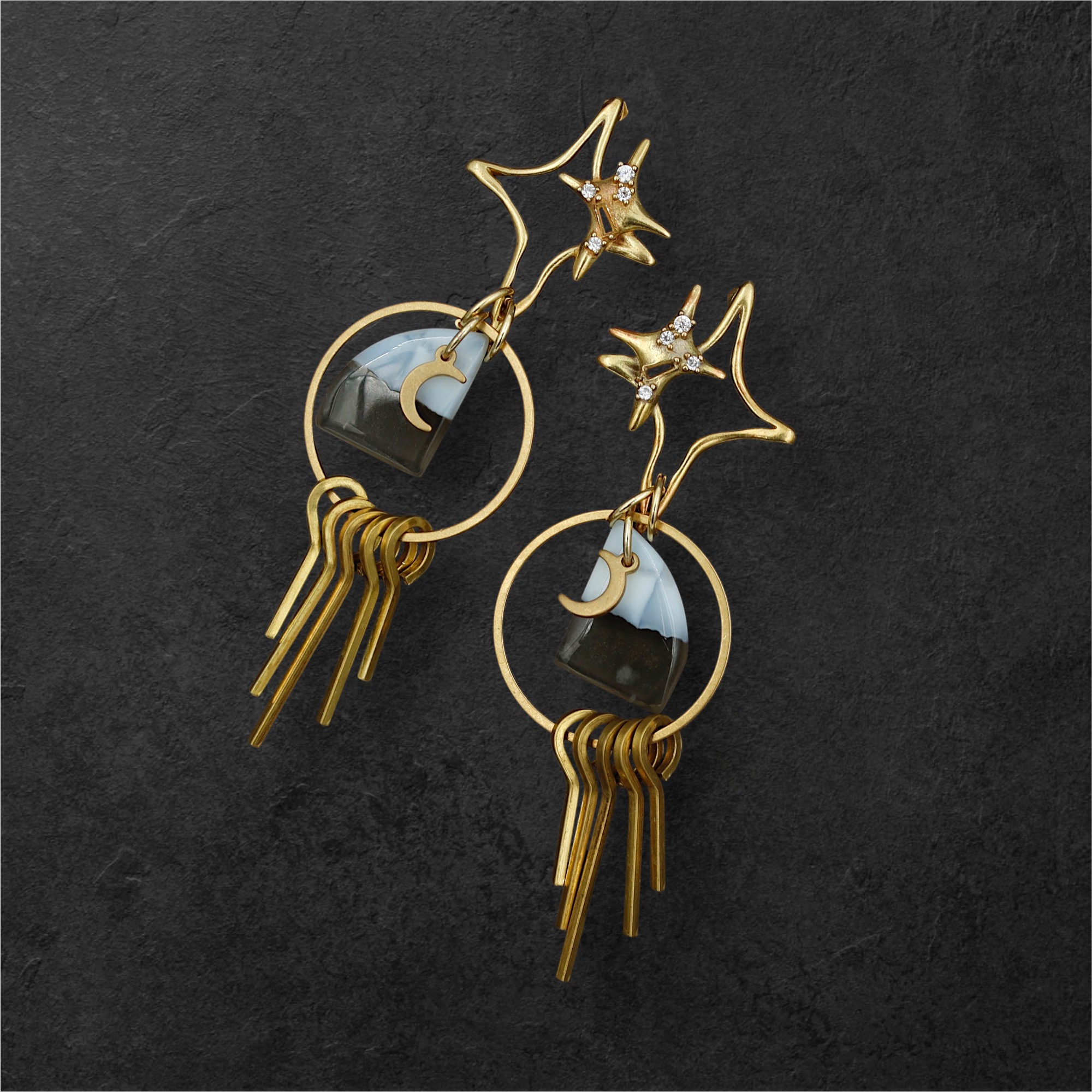 The gemstones are Peruvian blue opal. Brass jewelry details. The length of the earrings with the hook is 6.5cm. The weight of one earring is 3.5 grams.